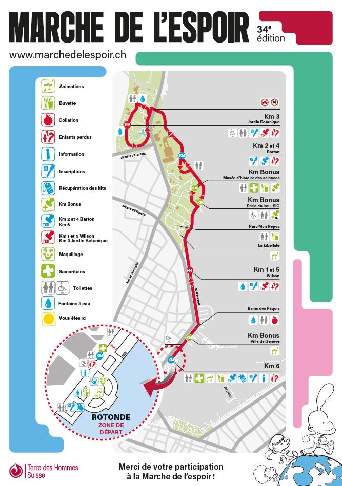 Le point de départ et d’arrivée se situe sur le Quai du Mont-Blanc, avec des stands d’animation tout au long du trajet pour petits et grands. Chaque kilomètre parcouru symbolise un pas de plus vers un avenir meilleur pour les enfants vulnérables à travers le monde.